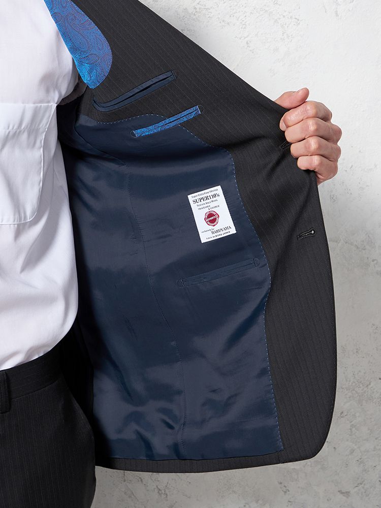 黒に限りなく近いグレーにストライプ柄を潜ませスマートな印象。