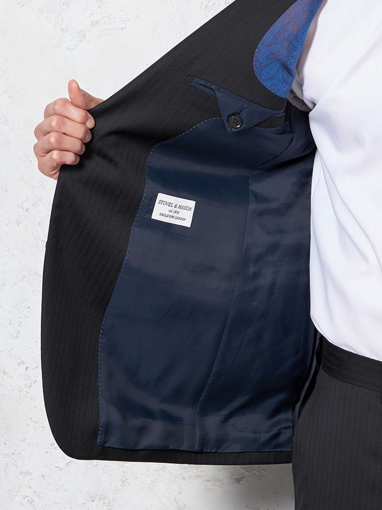 【ウール100%】スーツ2つボタン尾州生地ネイビーシャドウストライプSTOVEL&MASON