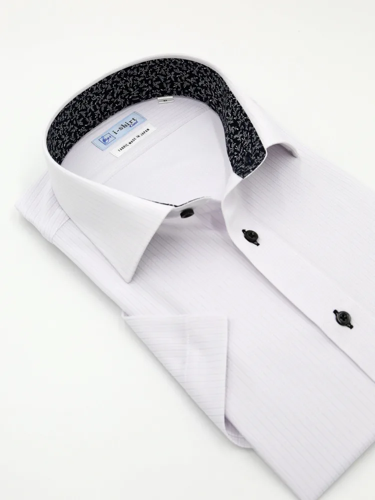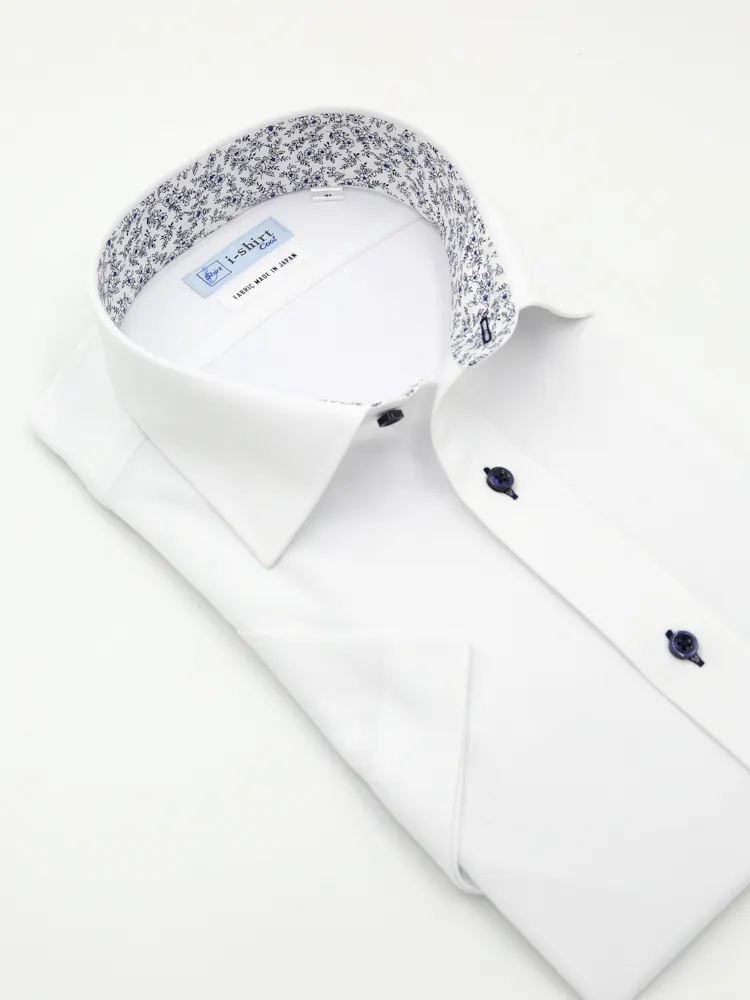 【完全ノーアイロン】半袖アイシャツセミワイド【バイオセンサークール生地使用】吸湿冷感高通気織柄無地ワイシャツi-shirt春夏