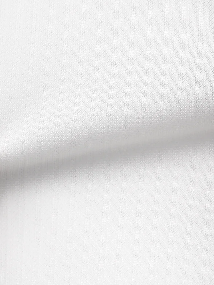 こだわりの日本製生地はソフトなポリエステルニットで、スポーツウェア等にも使われる高機能素材。体の動きに合わせて生地が伸び縮みする高いストレッチ性が特徴で、動作時の負荷が少なく着用ストレスも軽減します。