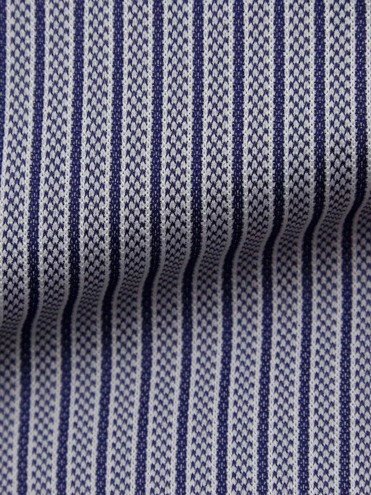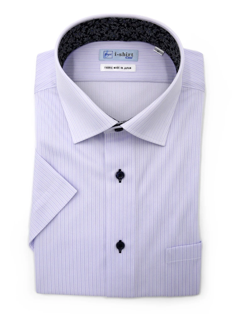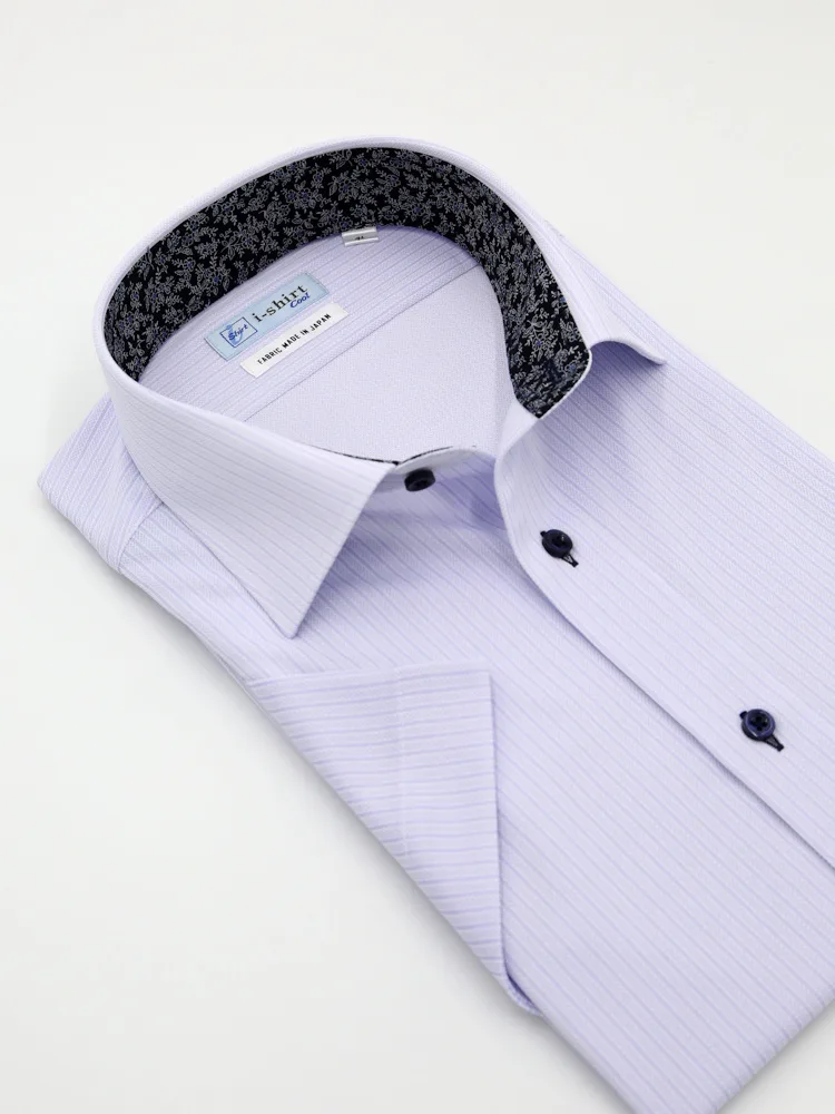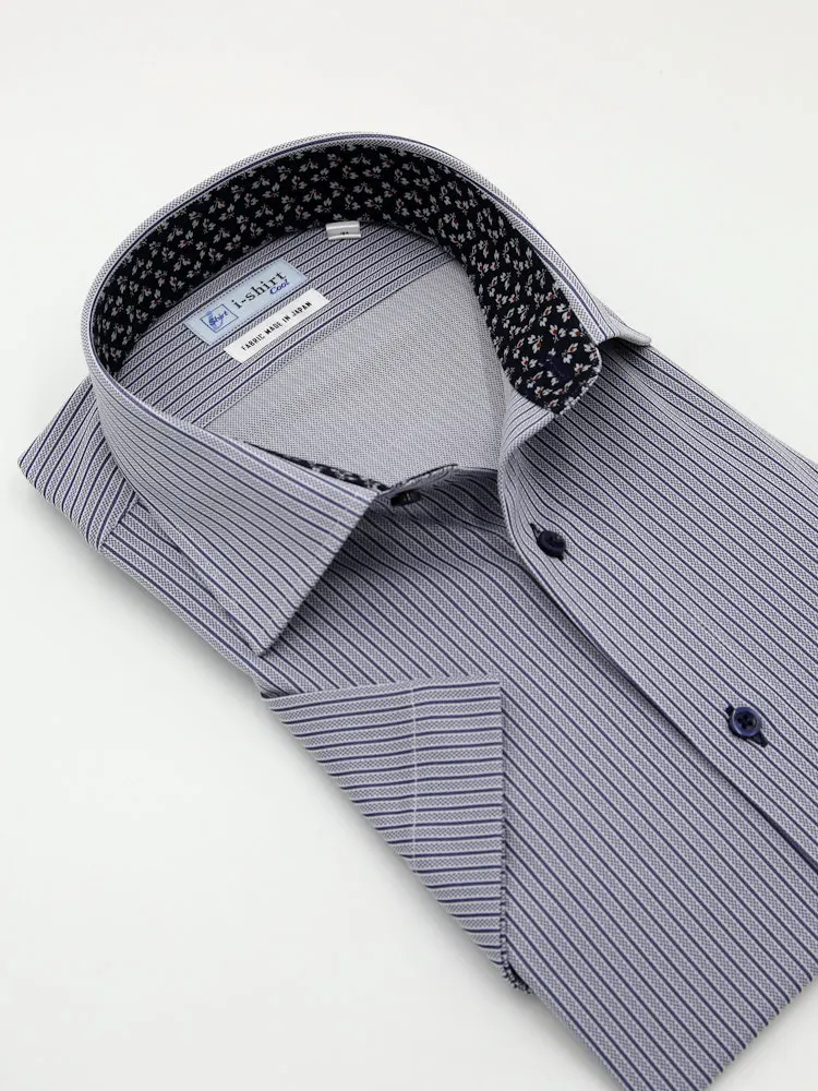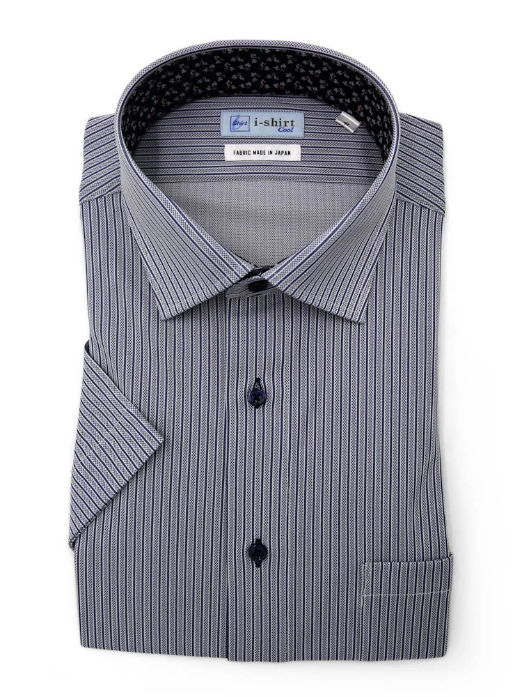 【完全ノーアイロン】半袖 アイシャツ セミワイド【メタクール生地使用】吸湿冷感 ストライプ ワイシャツ i-shirt 春夏(ネイビー)