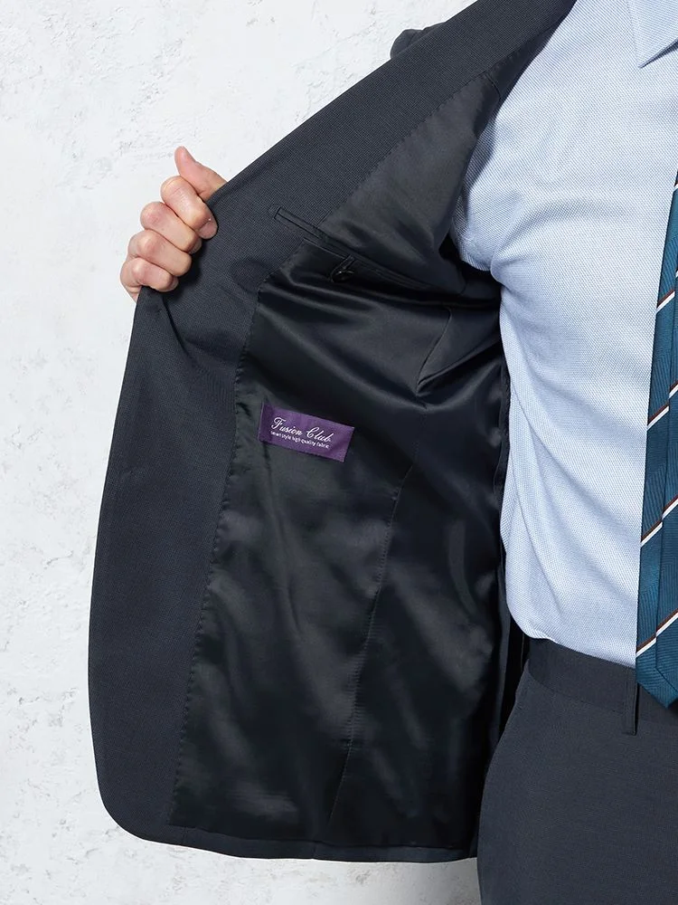 【上下ウォッシャブル】スーツ 2つボタン ツーパンツ イージーケア ネイビー マイクロチェック フュージョンクラブ