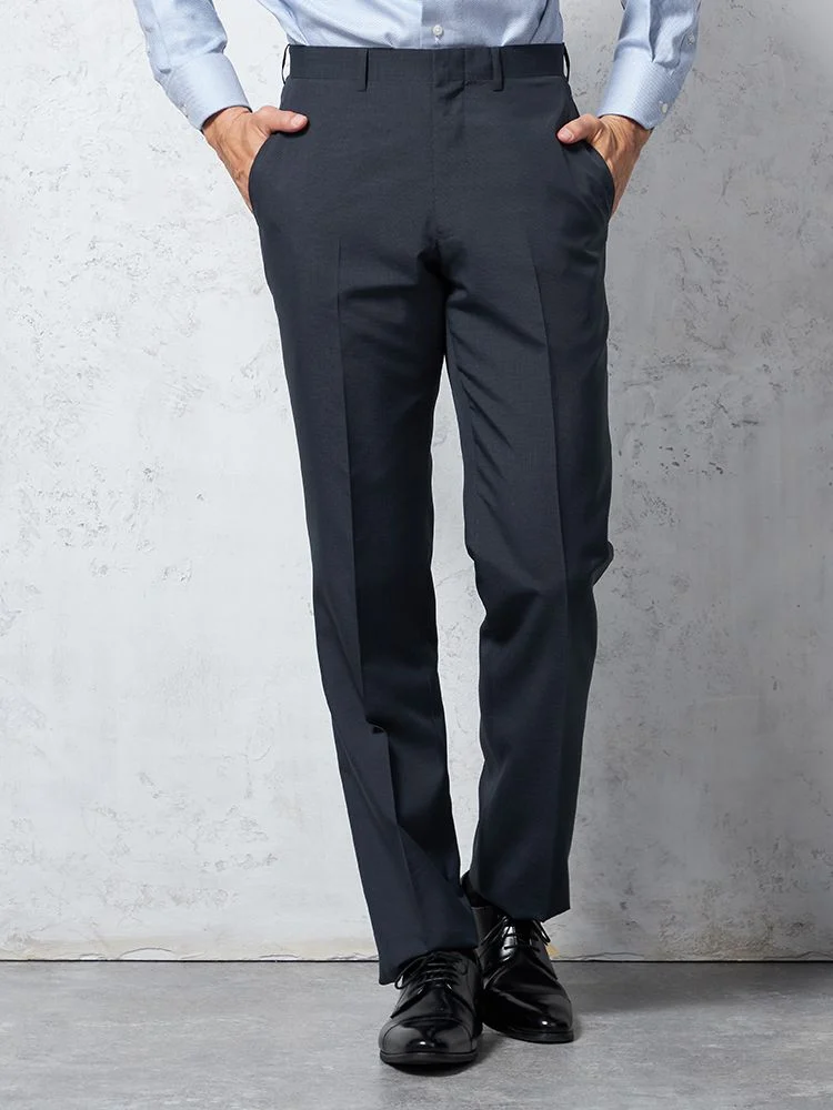 パンツの腰回りに生地の折り込みがなく、スッキリとしたシルエットを実現します。シンプルで洗練された印象を与え、すっきりとした着こなしが可能です。