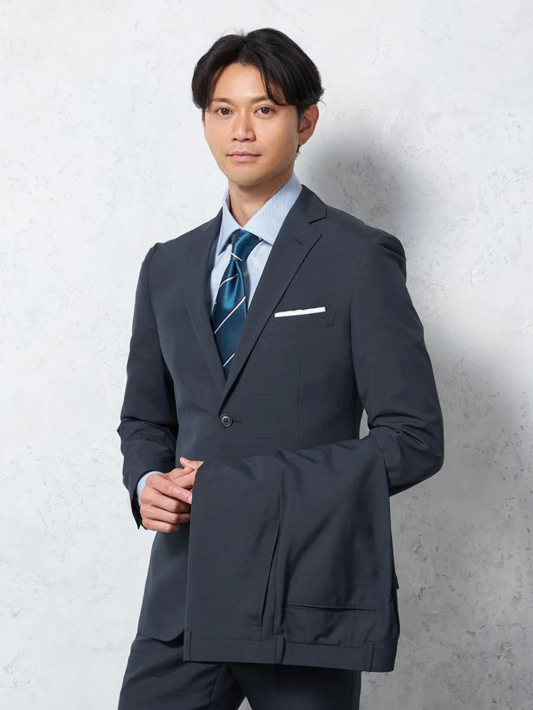 切り込みが1本のセンターベントデザインです。細身でスッキリとしたシルエットが特徴で、快適な着心地を提供します