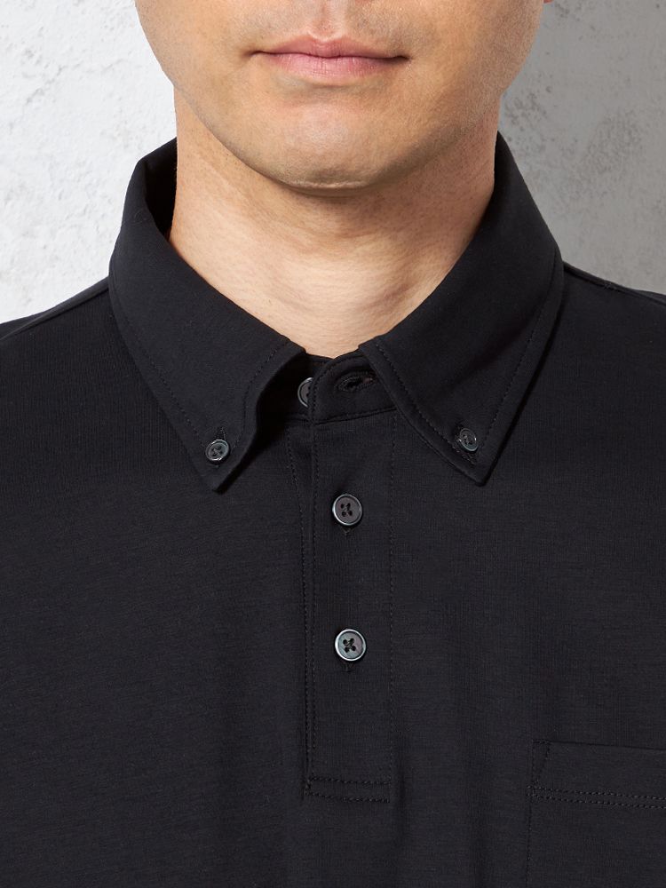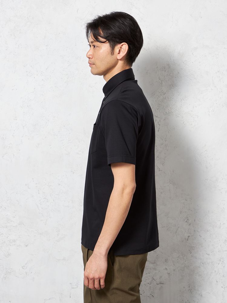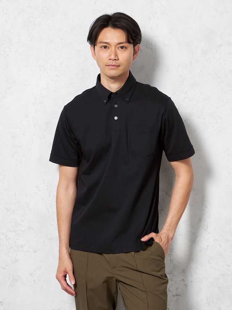 【汗じみ防止】半袖 ポロシャツ ボタンダウン ビズポロ シルケット加工 カジュアルインナー 無地 TOKYO RUN 春夏(ブラック)