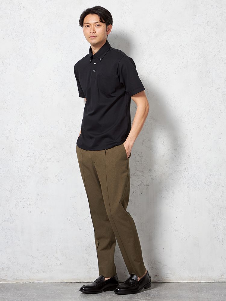 • ブラック 【汗じみ防止】半袖 ポロシャツ ボタンダウン ビズポロ シルケット加工 カジュアルインナー 無地 TOKYO RUN 春夏 1285403541