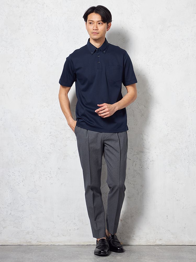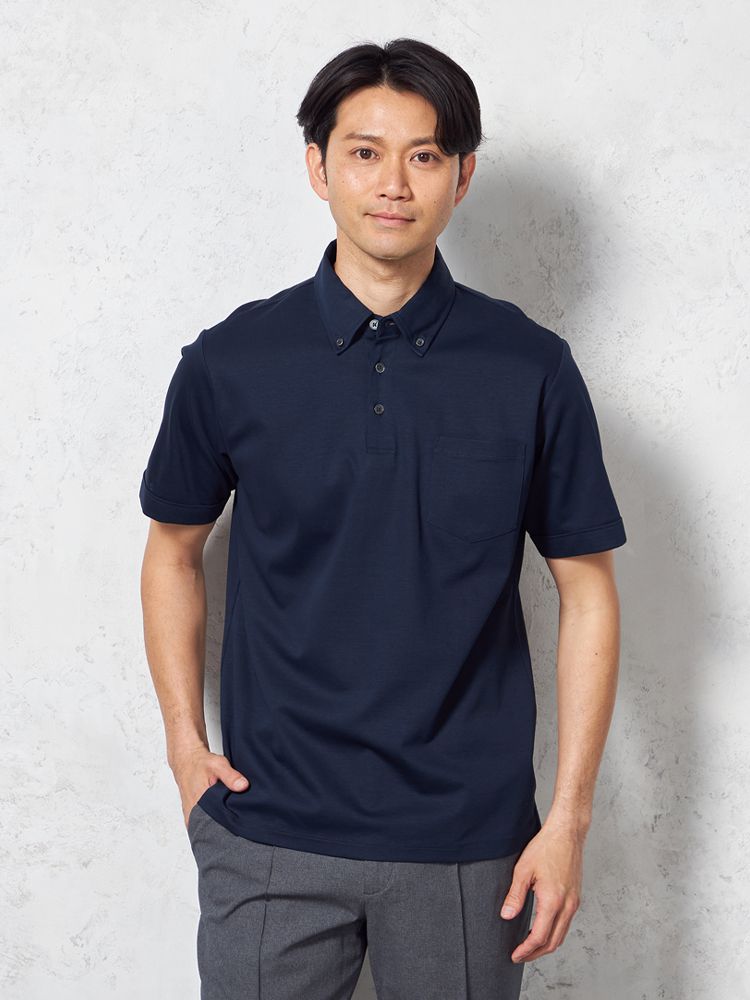 汗染み防止加工を施すことで、清潔感のある見た目をキープするポロシャツです。