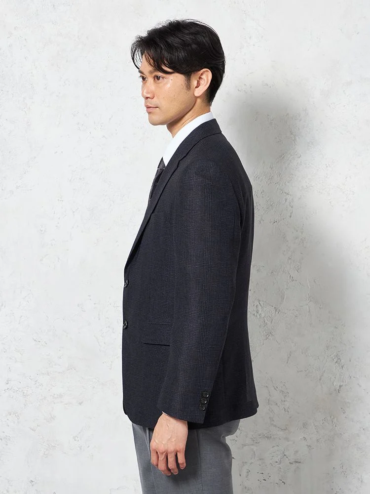 【超軽量】ジャケット 2つボタン リネンタッチ 高通気 ネイビー チェック RUCKEN BACCHAR 春夏