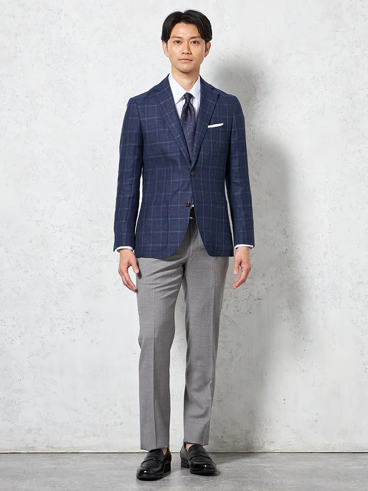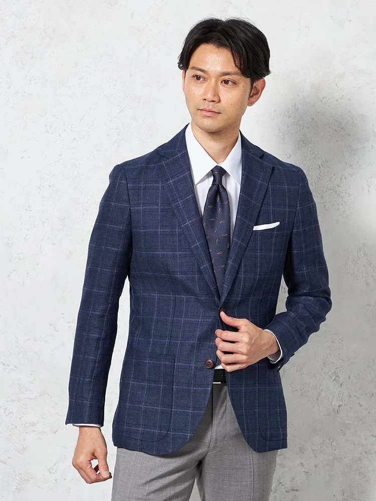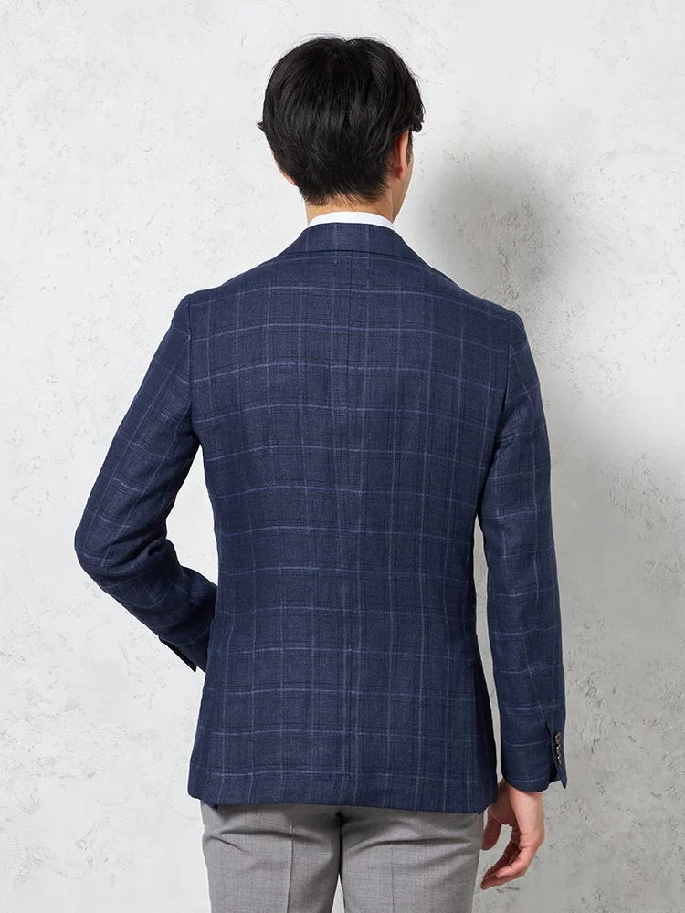 • 【軽量】ジャケット 2つボタン リネン混【REDA社製生地】ネイビー チェック RUCKEN BACCHAR 春夏 1278774313