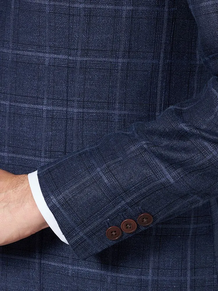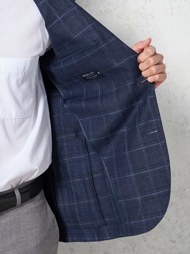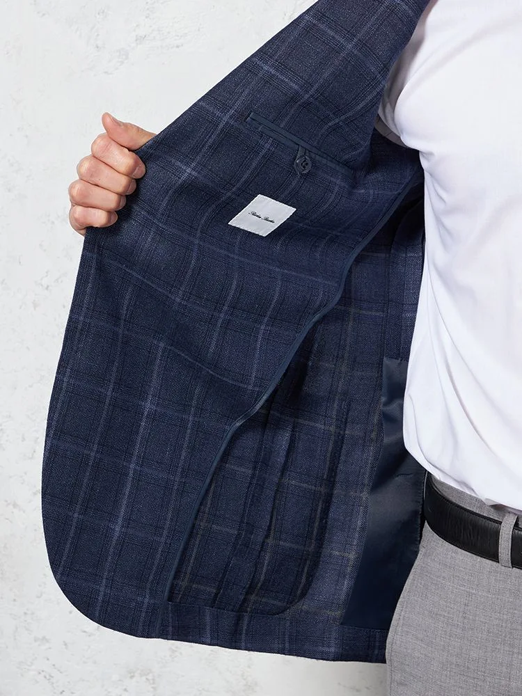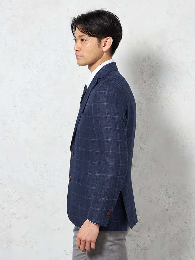 【軽量】ジャケット 2つボタン リネン混【REDA社製生地】ネイビー チェック RUCKEN BACCHAR 春夏