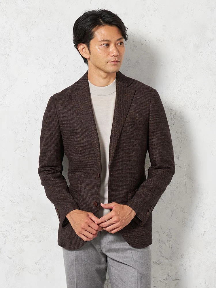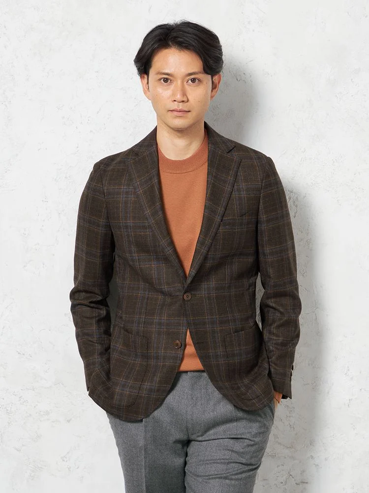 トラディショナルな雰囲気が魅力のチェック柄のテーラードジャケット。