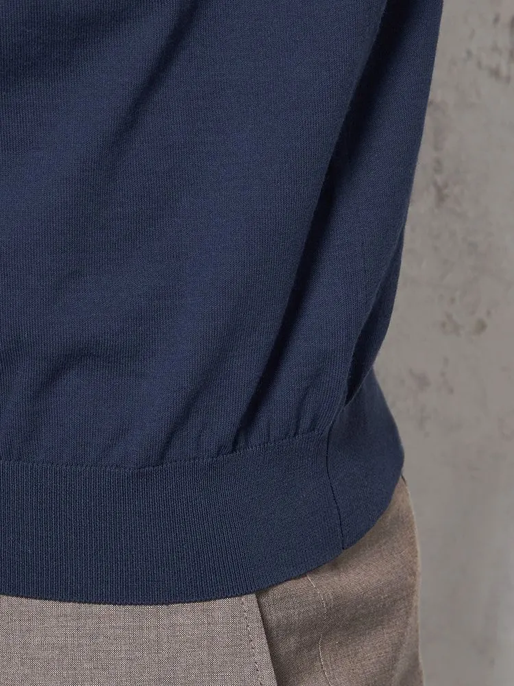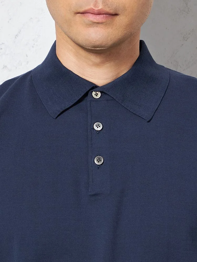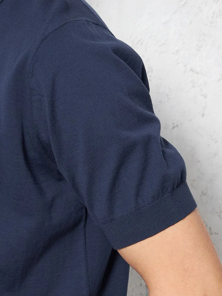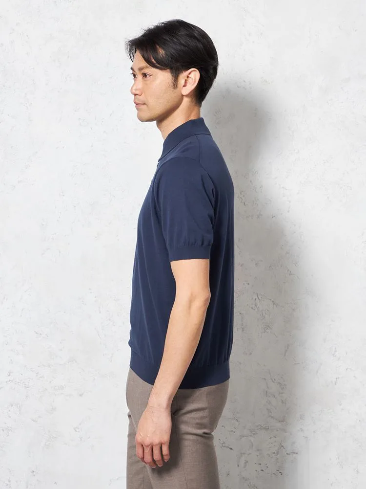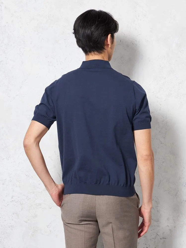 【綿100%】半袖 ニットポロシャツ レギュラーカラー カジュアルインナー 無地 リッケンバッカー 春夏(ネイビー)