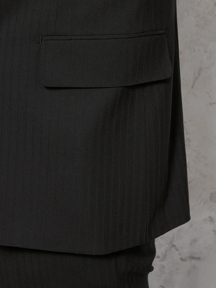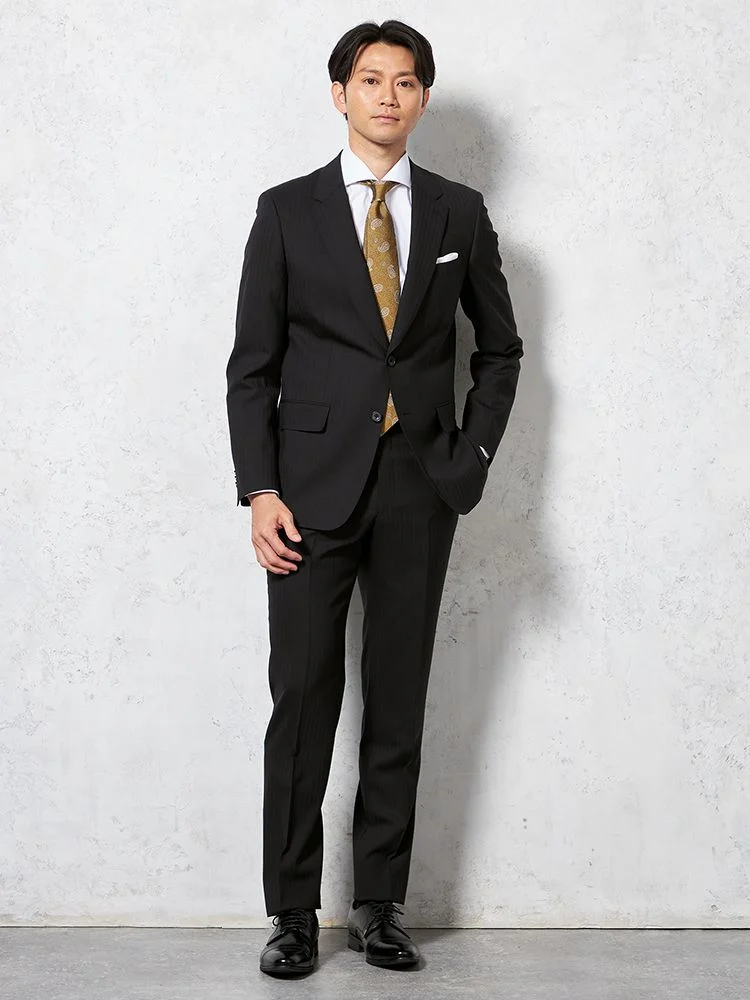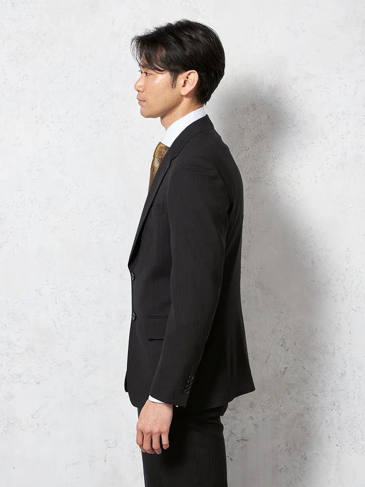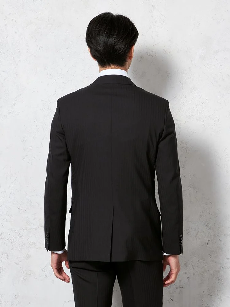 【ウール100%】スーツ 2つボタン イタリア製生地 ブラック シャドウストライプ リッケンバッカーホワイト