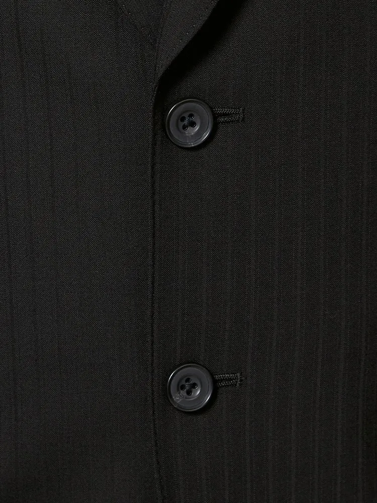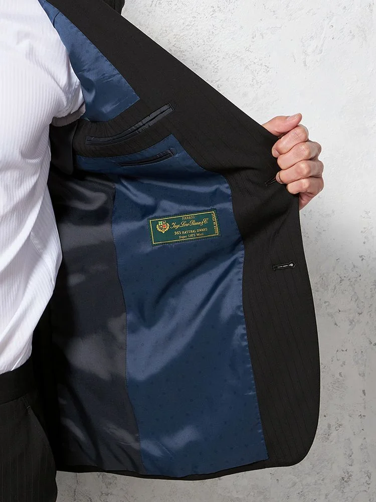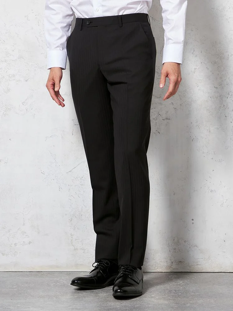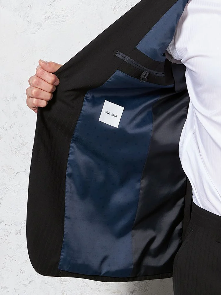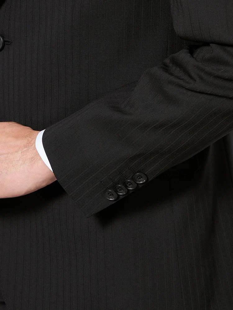 【ウール100%】スーツ 2つボタン イタリア製生地 ブラック シャドウストライプ リッケンバッカーホワイト