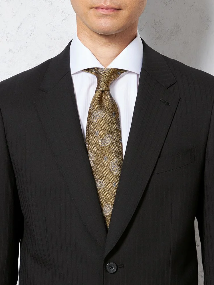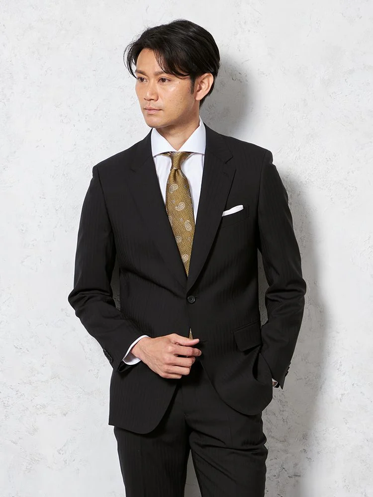 織りでトラディショナルなストライプ柄を表現した素材のスーツです。