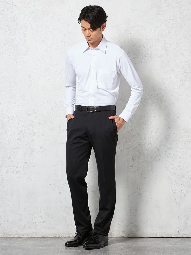 【i-Pants-アイパンツ-】バイオセンサー生地使用【スリムタイプ】接触冷感高通気ノータックシャドウストライプスラックスnero春夏【スリムデザイン】