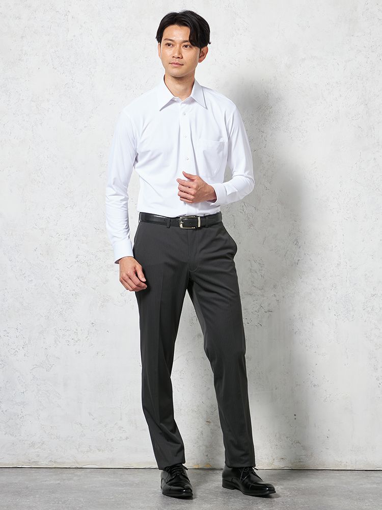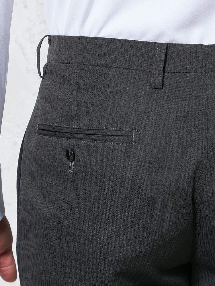 【i-Pants-アイパンツ-】バイオセンサー生地使用【スリム】ノータック シャドウストライプ スラックス nero【スリムデザイン】(M.グレー)