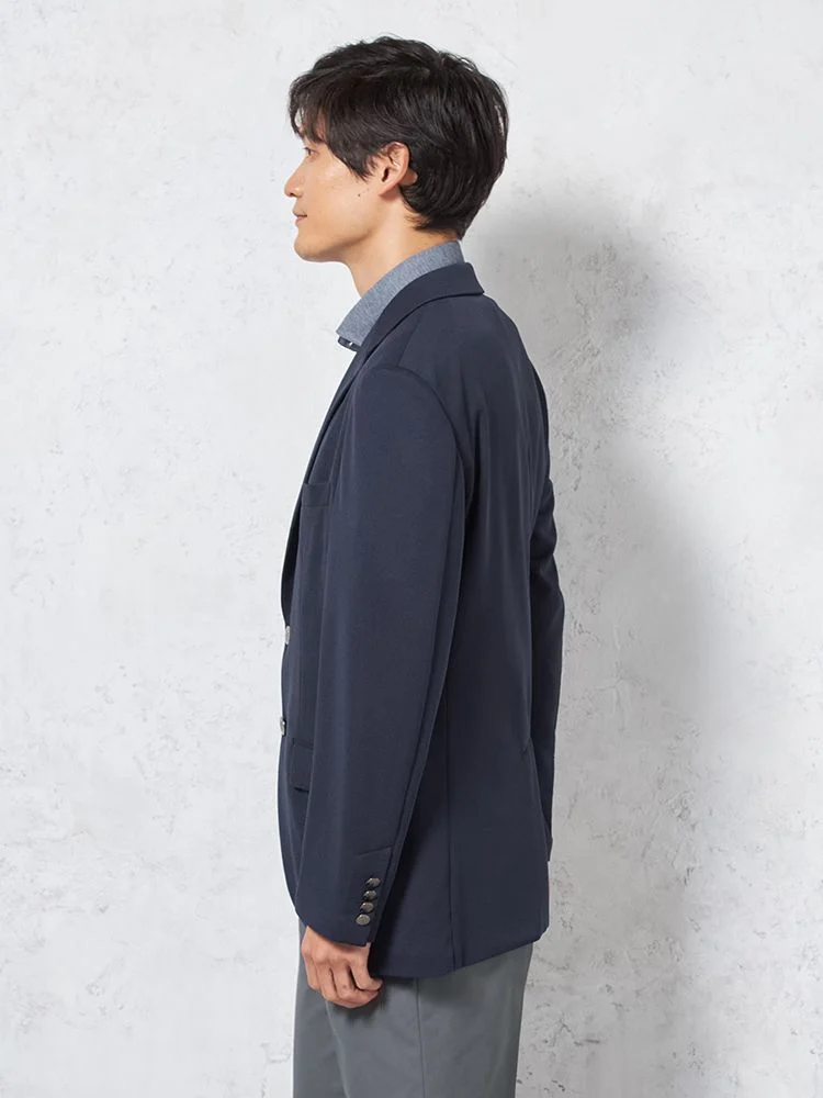【i-Jacket-アイジャケット-】ジャケット2つボタンストレッチニット素材ウォッシャブル