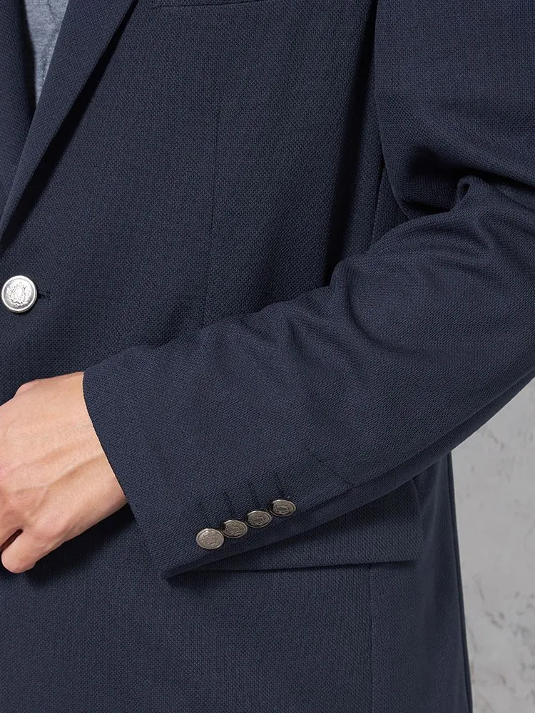 【ウォッシャブル】ジャケット メタル2つボタン サスビズ ブレザー ネイビー 無地 リサイクル素材