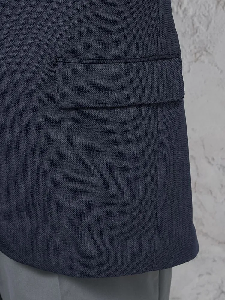 切り込みが1本のセンターベントデザインです。細身でスッキリとしたシルエットが特徴で、快適な着心地を提供します