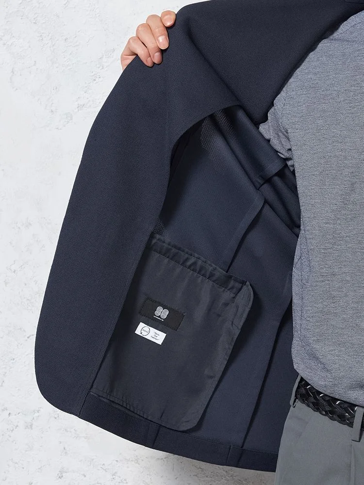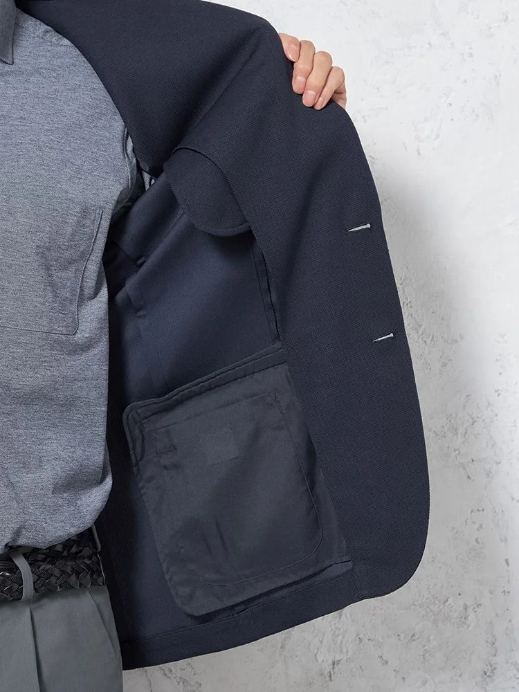 背中の裏地が省かれている背抜き仕様で、軽やかな着心地を実現。通気性があり、快適に着用できます。