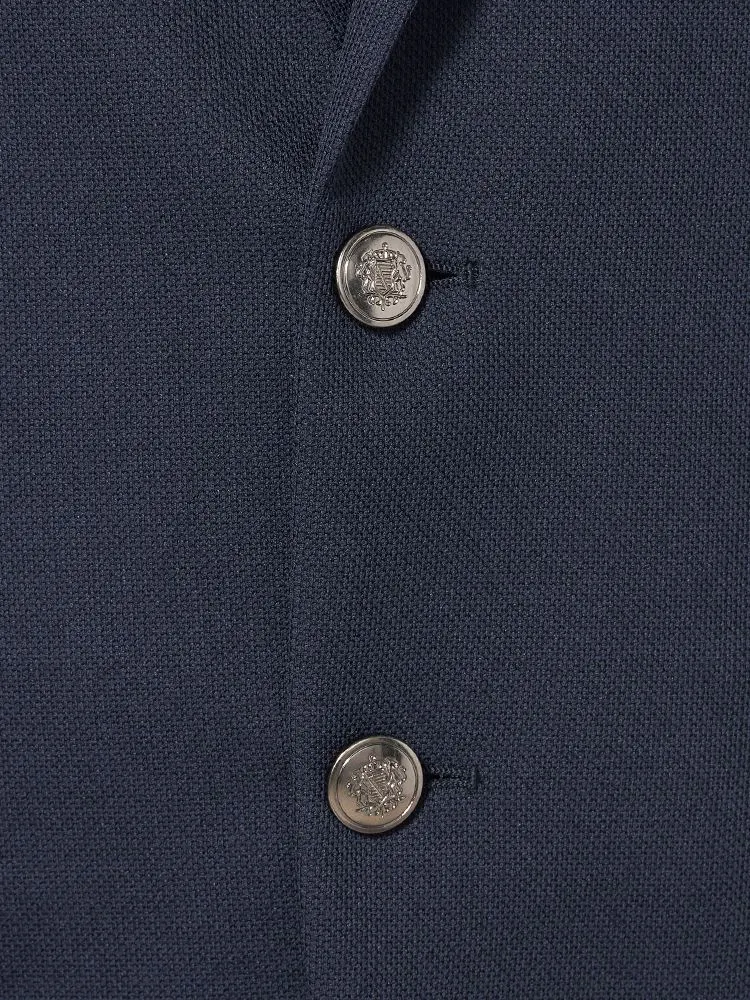 エンブレム入りのシルバーボタンがデザインのアクセントになっています。