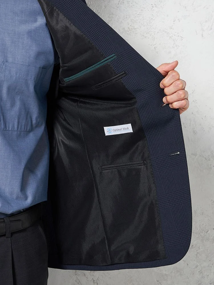 【ウォッシャブル】ジャケット 2つボタン ストレッチ ネイビー チェック リッケンバッカー