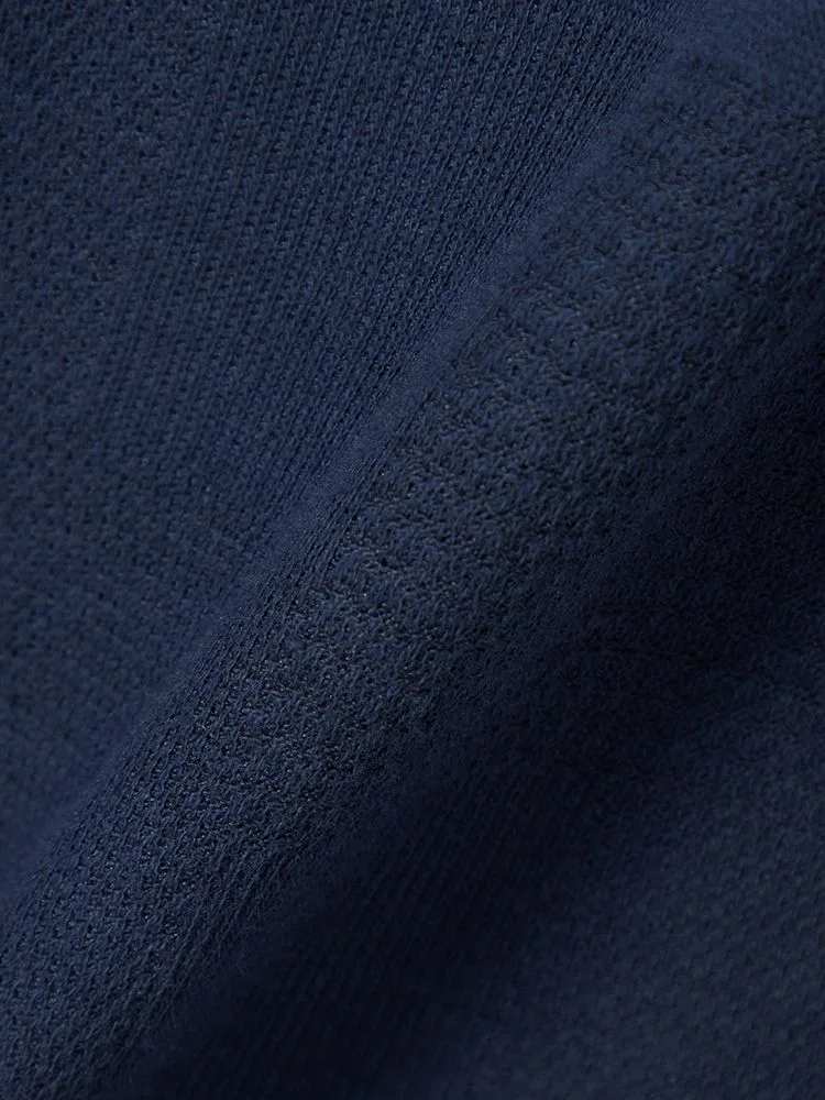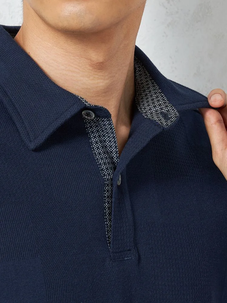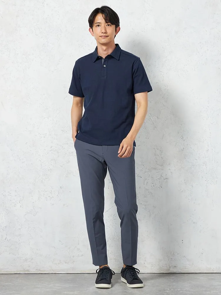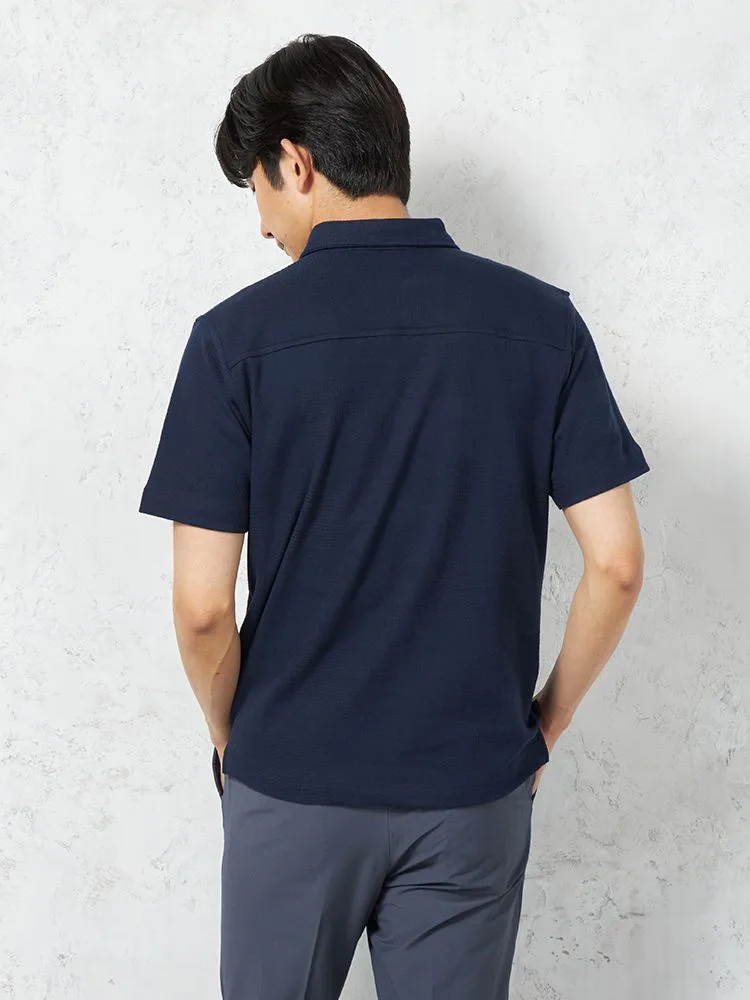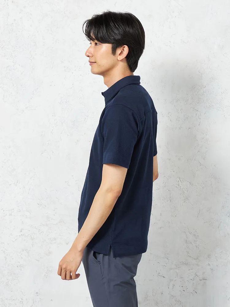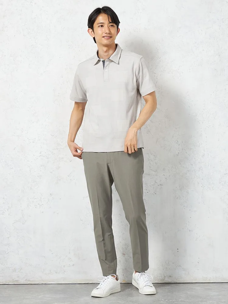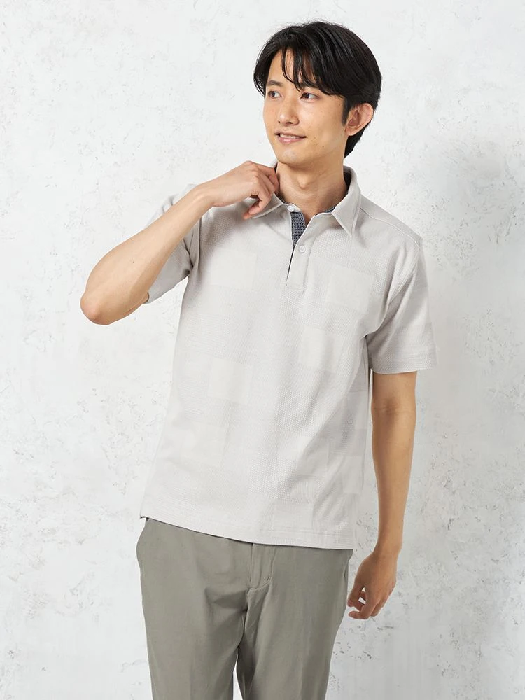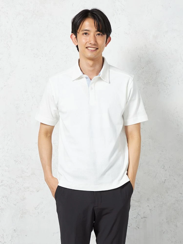 独特の編地をミックスした、ジャカード素材の半袖ポロシャツ。