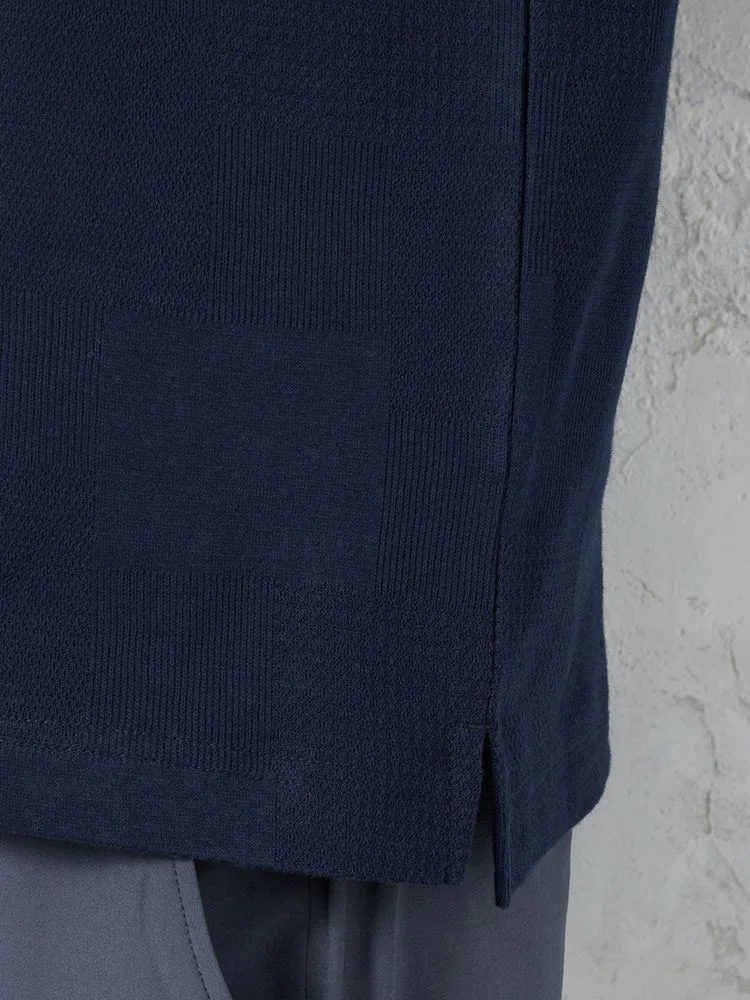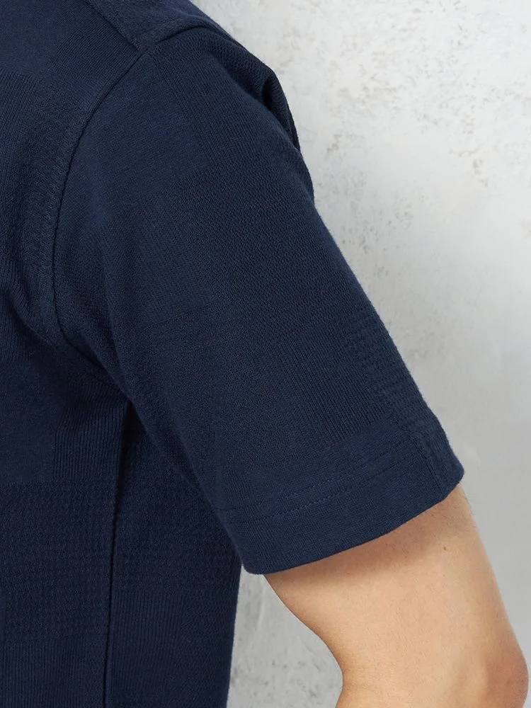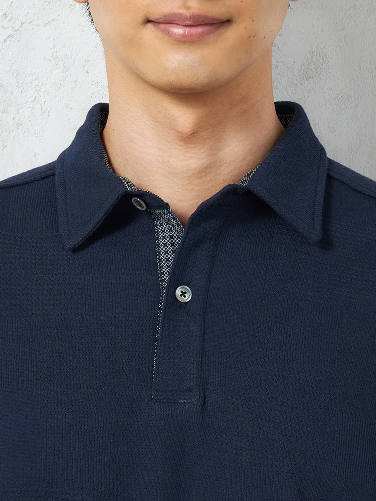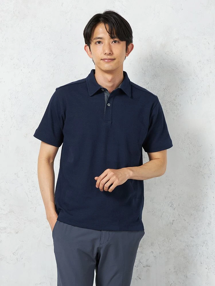 【RUCKEN BACCHAR】半袖 ポロシャツ パネル織柄 カジュアルインナー 春夏(ネイビー)
