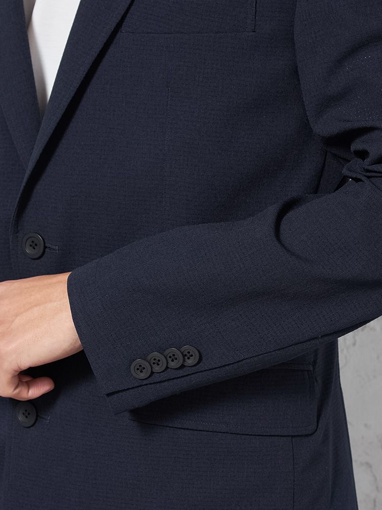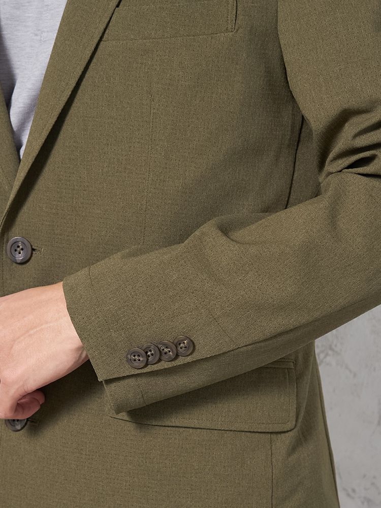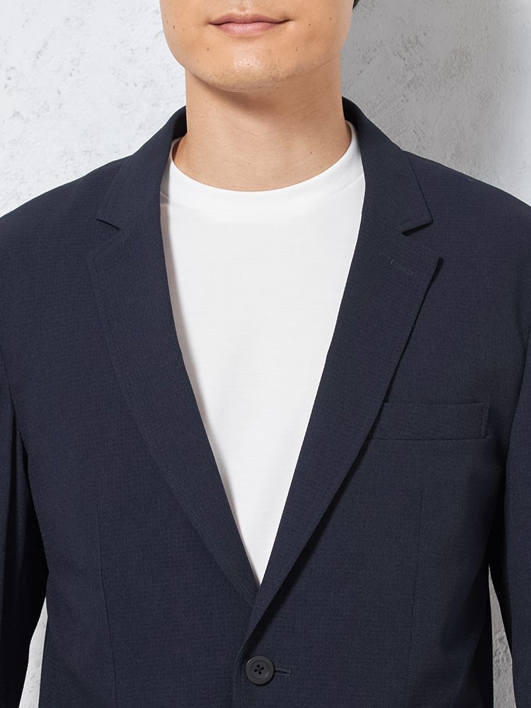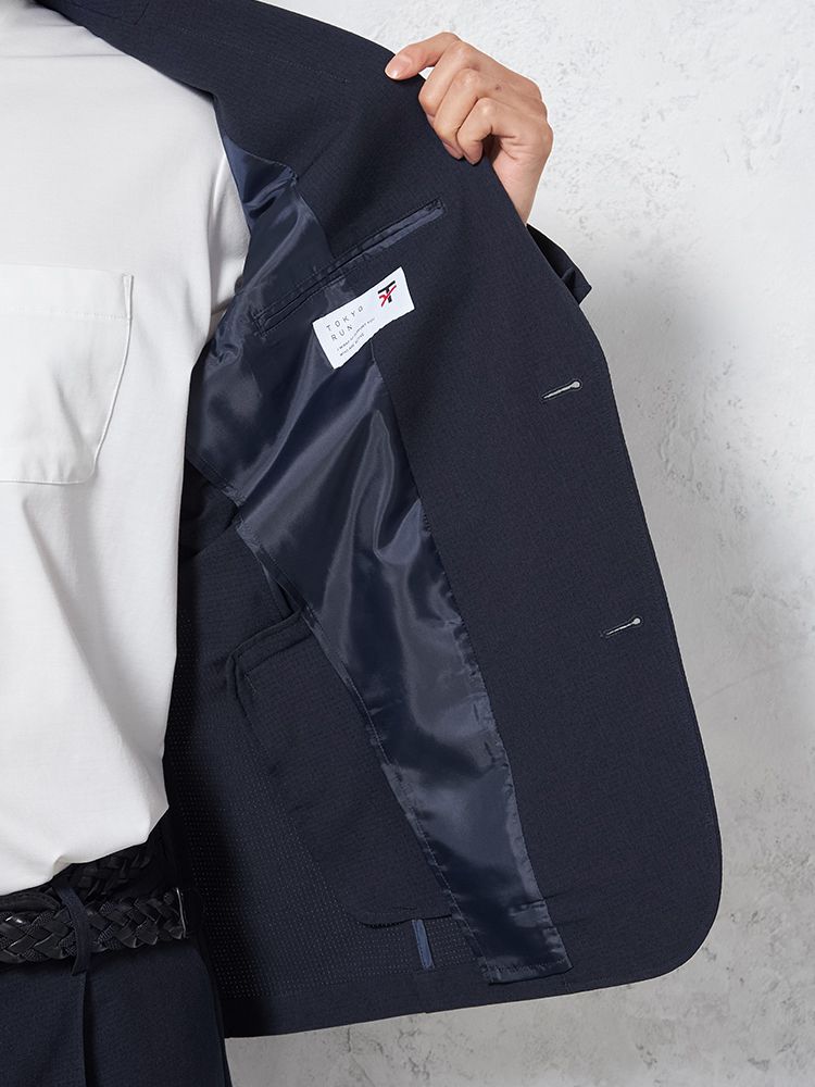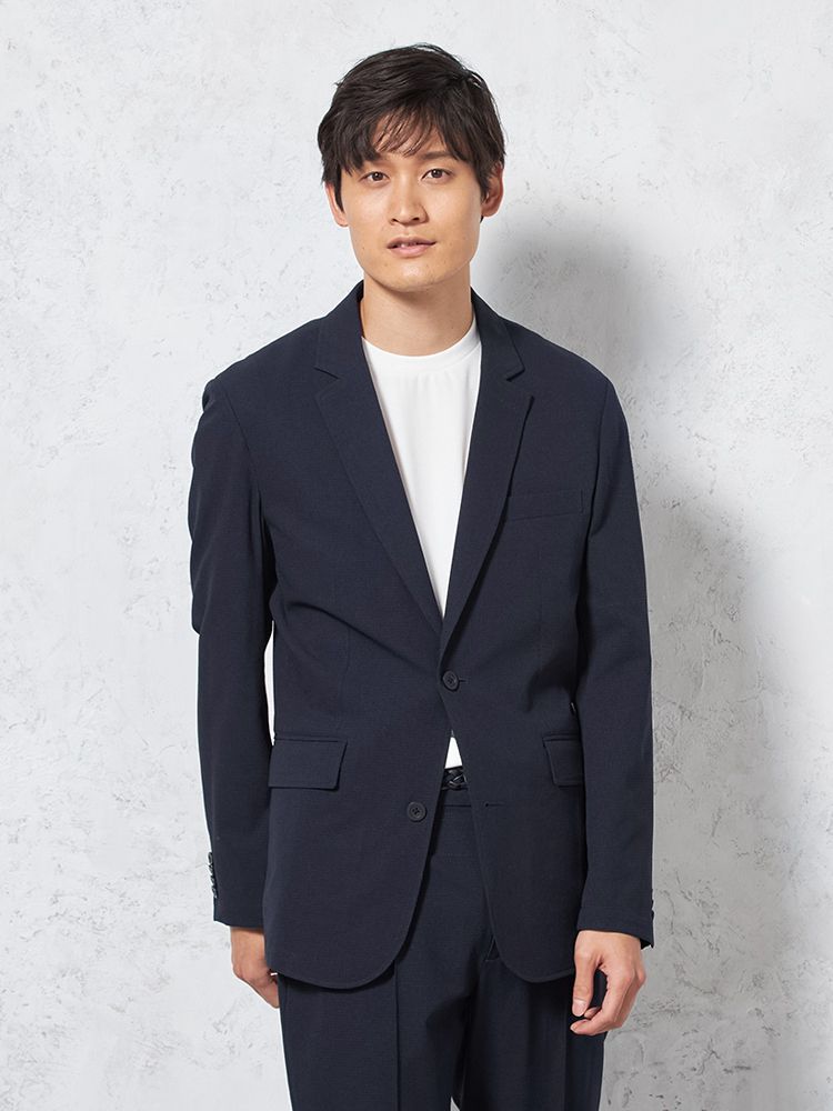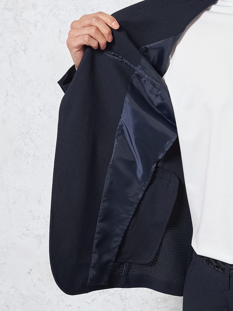 東レ(株)の高通気快適素材「Dot Air-ドットエアー-」を使用した、カジュアルテーラードジャケット。