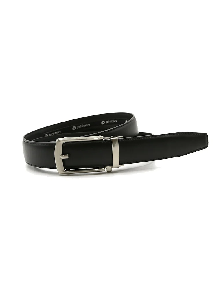 ファイテンの技術アクアチタンを含浸したテープをベルト背面に加工したビジネスベルト。