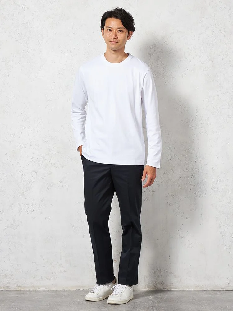 綿100%の素材で、肌に優しく、通気性も抜群。快適に着用できるだけでなく、デイリーで使いやすい素材です。