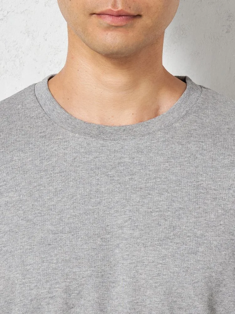 シルクのような美しい光沢や風合いを生むシルケット加工を施したクルーネックTシャツ。