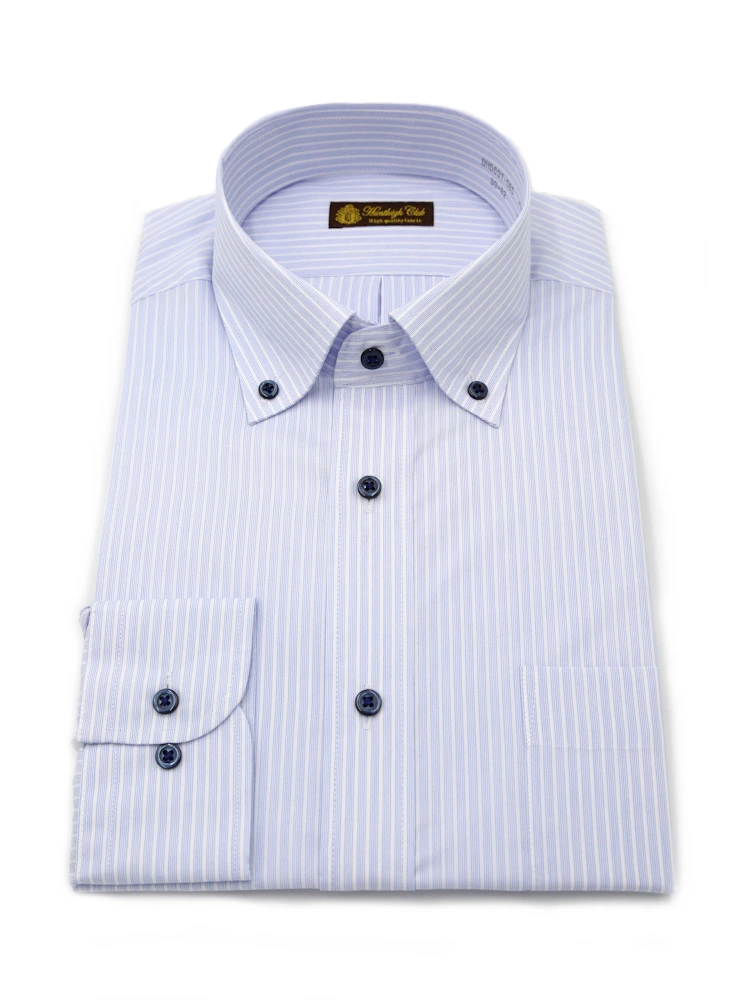 【形態安定】長袖 ワイシャツ ボタンダウン 色柄 ハントレークラブ 通年(S.ブルー)