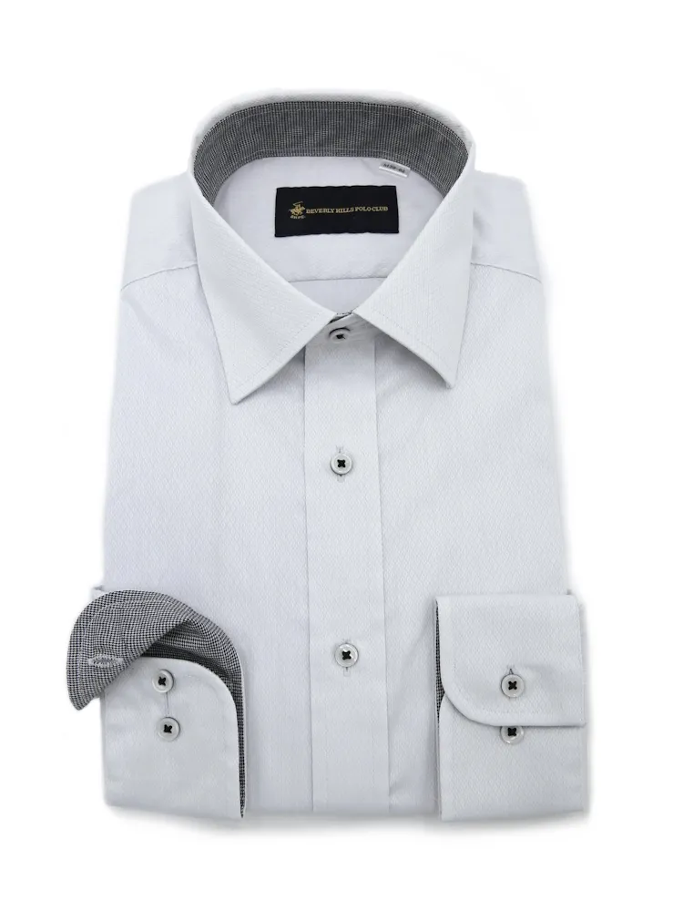 【形態安定】長袖ワイシャツ セミワイド 別布 L.グレー 織柄無地 ビバリーヒルズポロクラブ 通年
