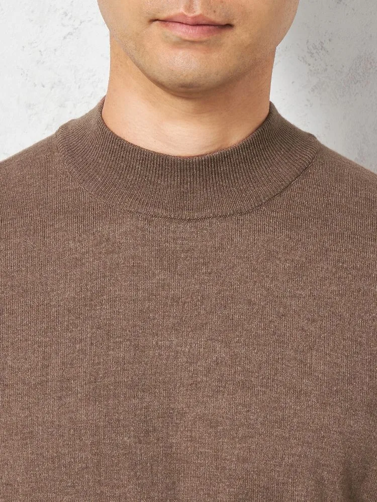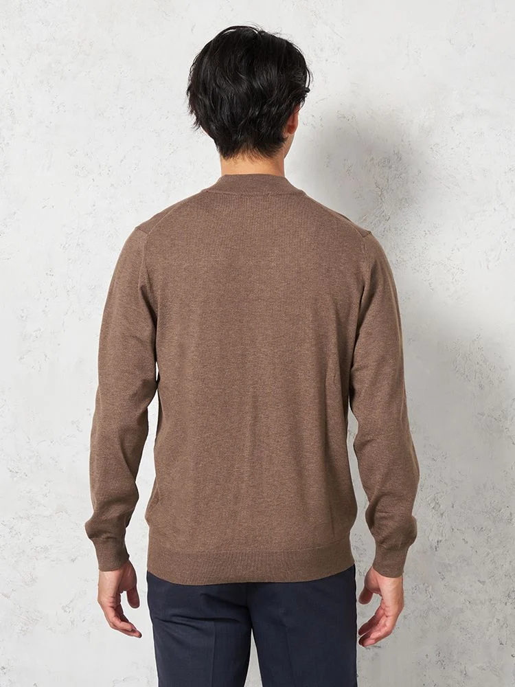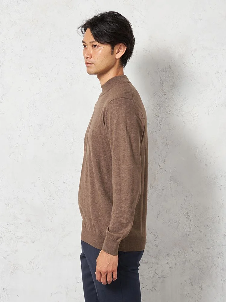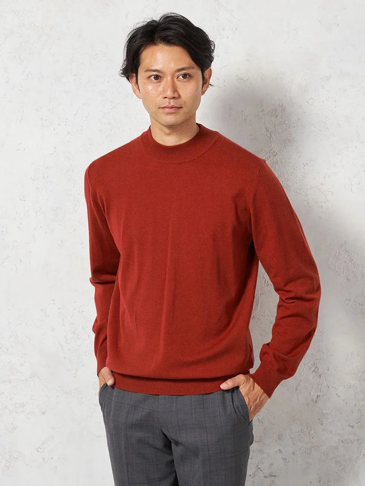 やや詰まりのあるモックネックでカジュアルになりすぎない、こなれ感のある装いが完成します。
