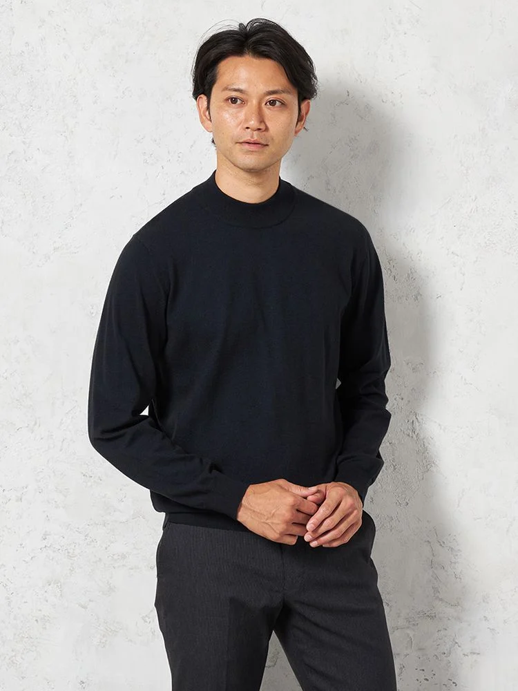 • ネイビー 【ウォッシャブル】長袖ニット ファイブミックス モックネック カジュアルインナー 無地 リッケンバッカーブラック 秋冬 1311703133