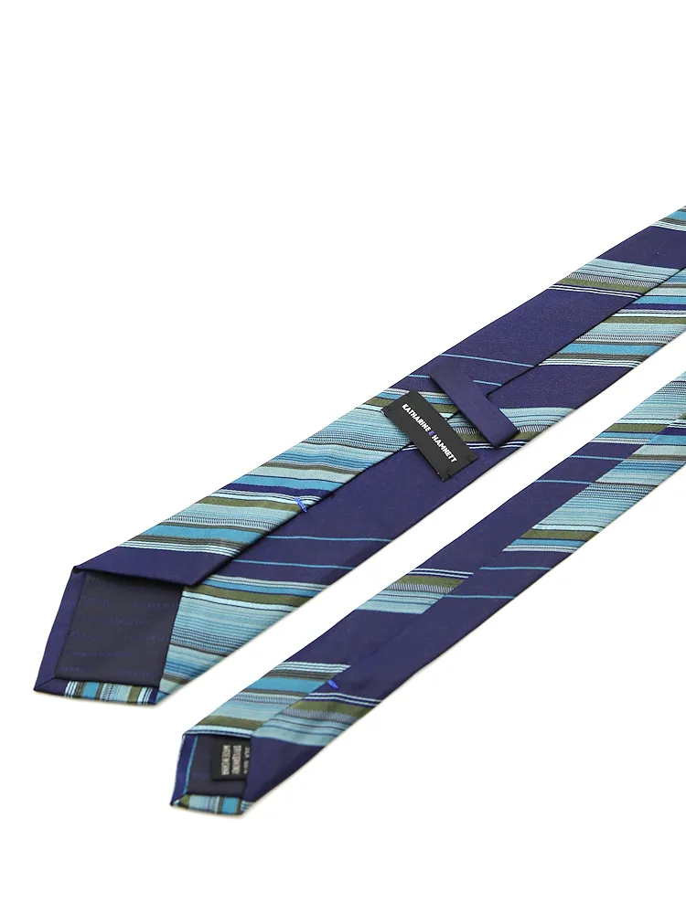 【KATHARINE E HAMNETT-キャサリン・イー・ハムネット-】ネクタイ レギュラー シルク100% ストライプ 秋冬(グリーン)