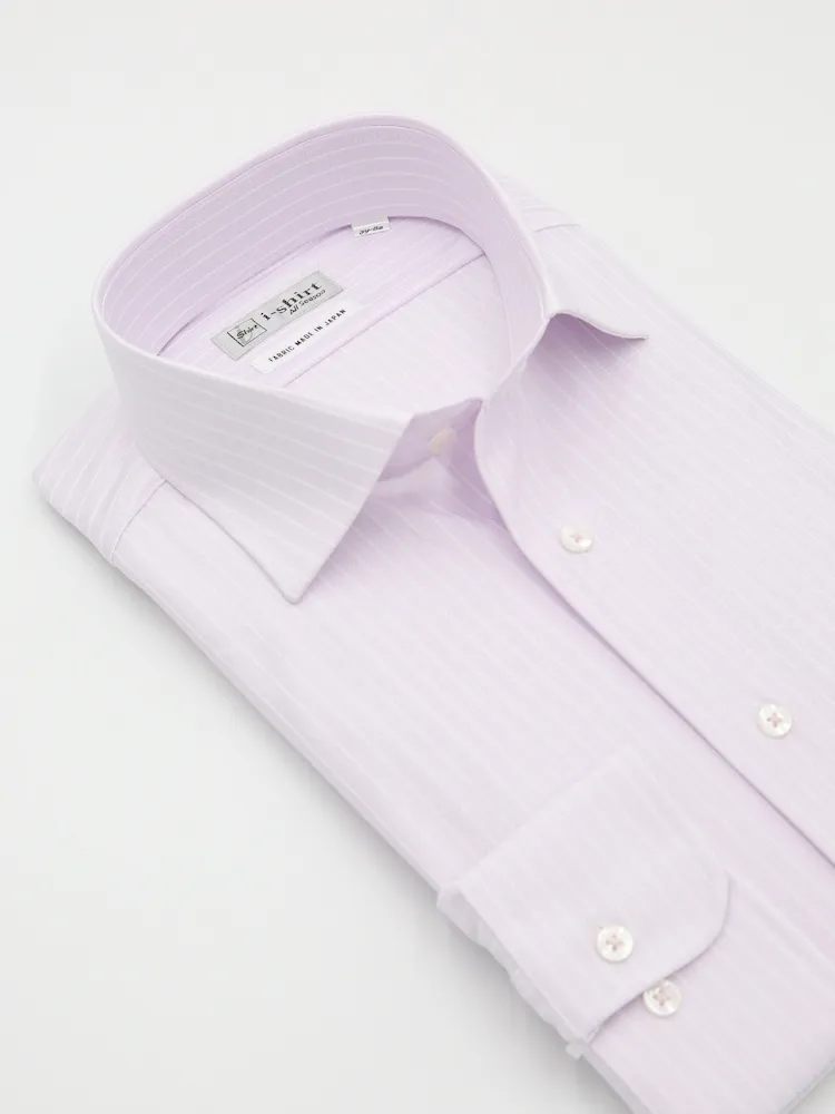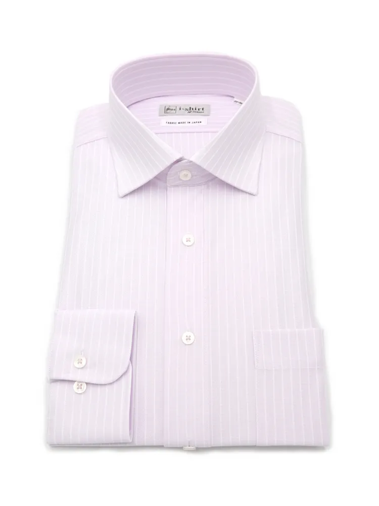 【完全ノーアイロン】長袖 アイシャツ セミワイド【トップヘザーシリーズ】ストライプ調 ワイシャツ i-shirt 通年(L.ピンク)