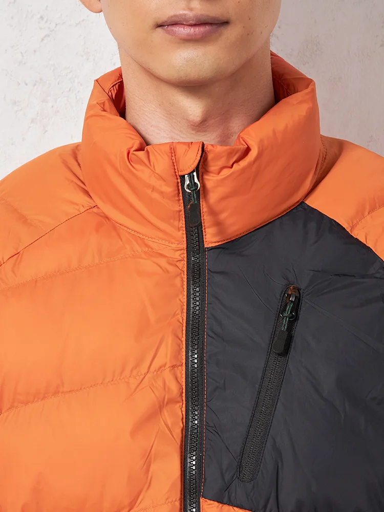 首元からの冷気の侵入も防ぐスタンドカラー仕立て。