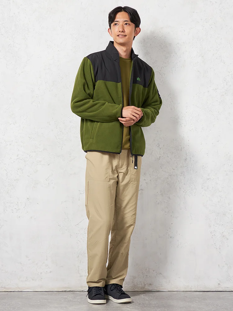 【LOGOS-ロゴス-】 布帛切替フリースブルゾン カジュアルアウター 無地 秋冬(カーキー)