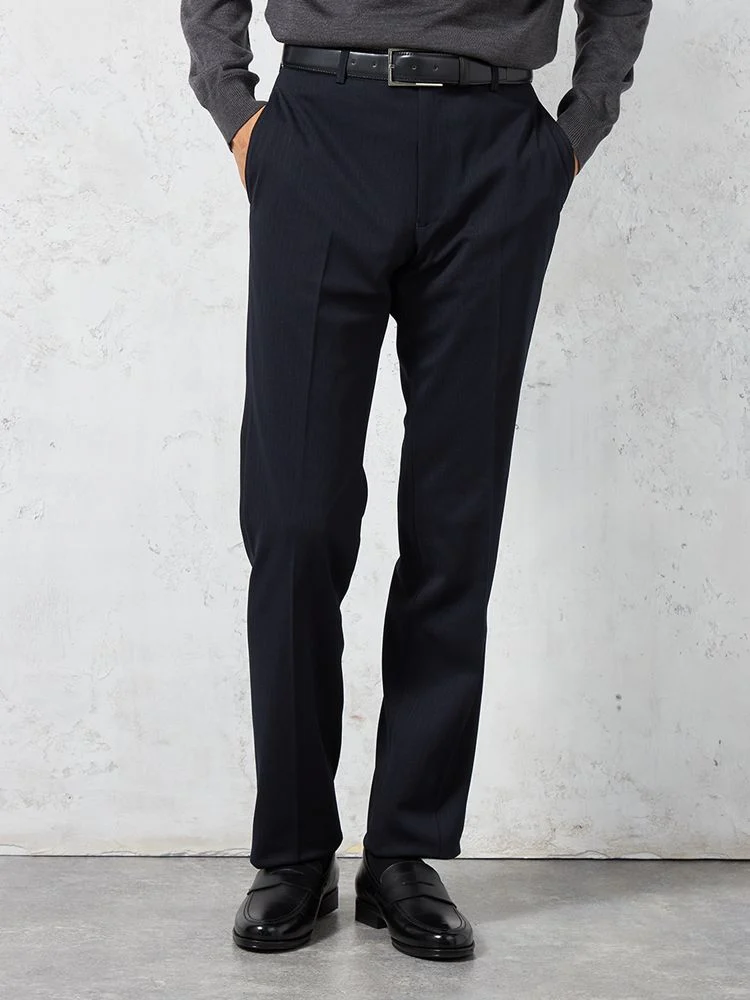 【i-Pants-アイパンツ-】パンツ ノータック ウォッシャブル ストレッチ ネイビー シャドウストライプ スラックス リッケンバッカー 秋冬