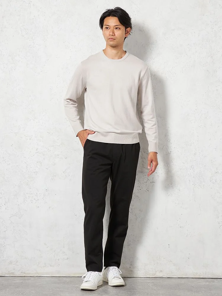 スソをややすっきりさせたテーパードシルエットなので、リラックスな着用感ながら、だらしなくならない絶妙なフィットです。