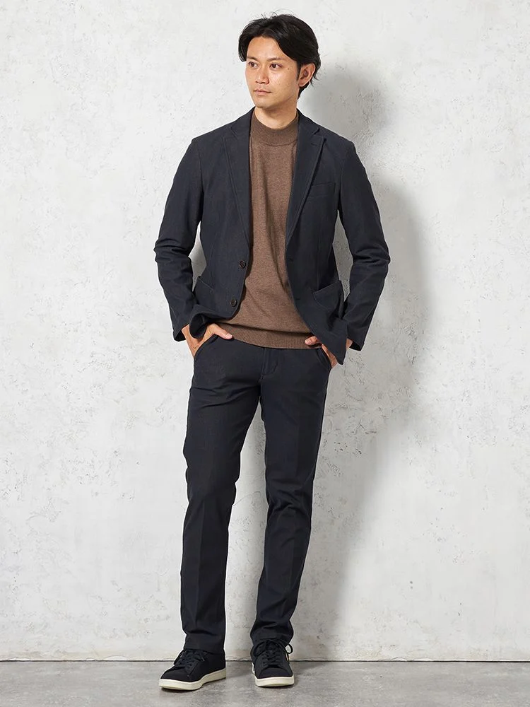 同素材のジャケットも展開しているので、セットアップとしても着用できる1本です。