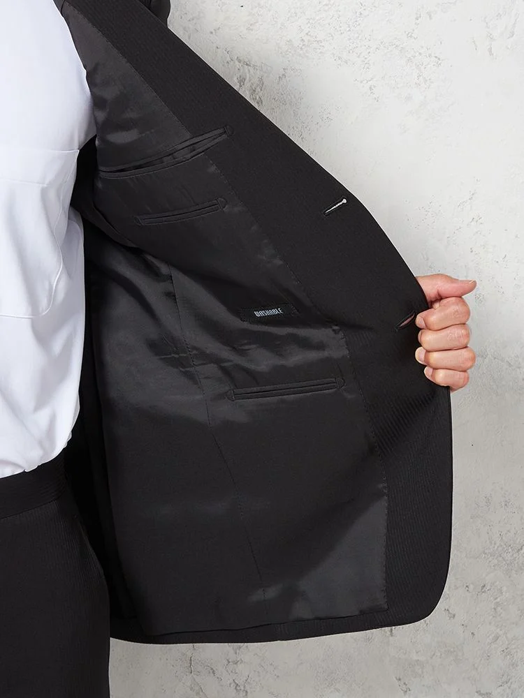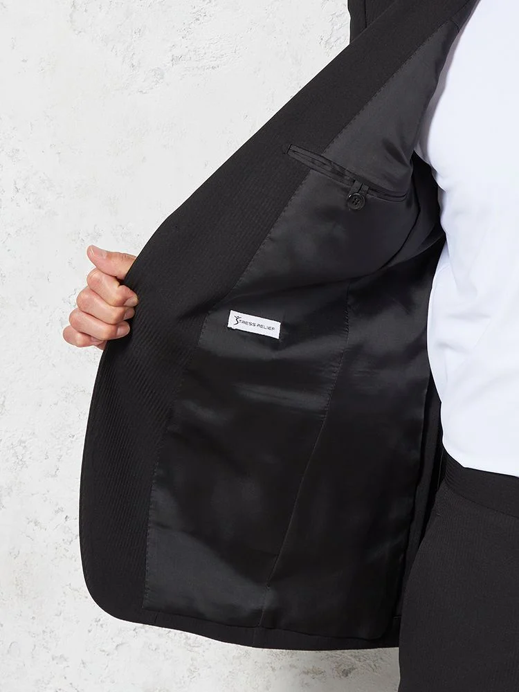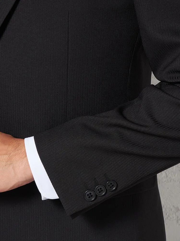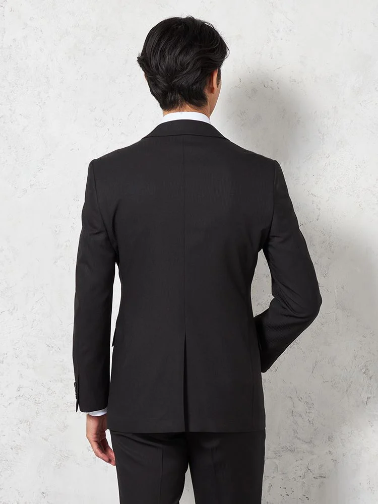【即納】スリーピーススーツ2つボタン【WEB限定】上下ウォッシャブルブラックシャドウストライプ3シーズン対応