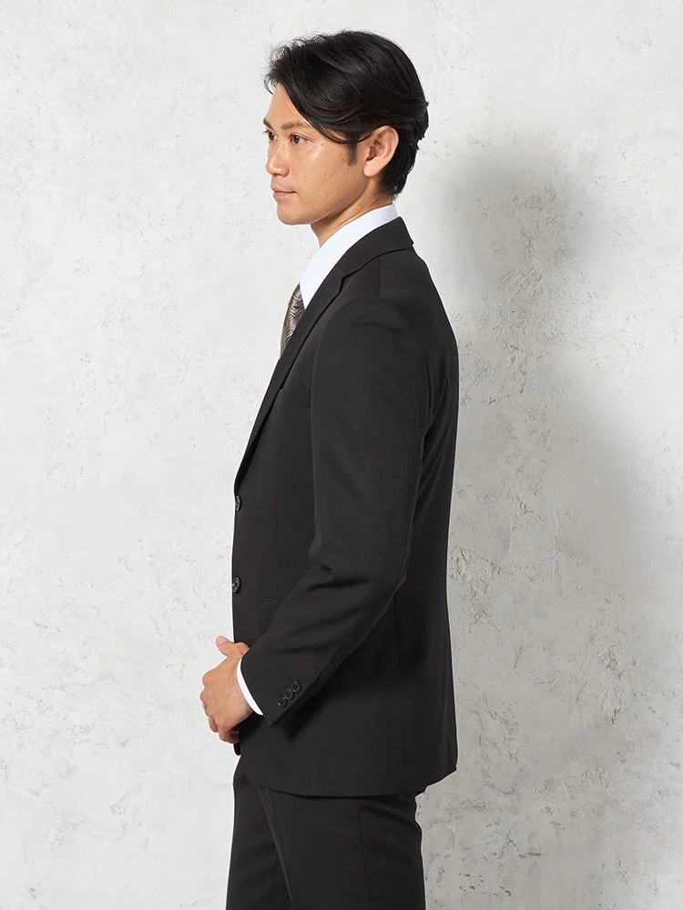 【即納】スーツ2つボタン【WEB限定】4WAYストレッチシャドウストライプブラック