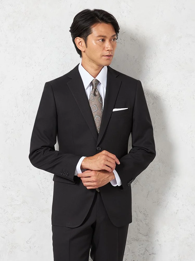 【即納】スーツ 2つボタン【WEB限定】4WAYストレッチ シャドウストライプ ブラック 通年
