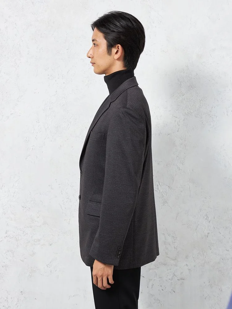 細やかなチェック柄が目を引くテーラードジャケット。