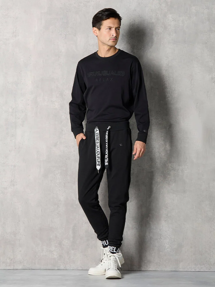 ブランド定番のヘビー裏毛素材をベースに、裾にロゴデザインを加えた遊び心あるジョガーパンツ。