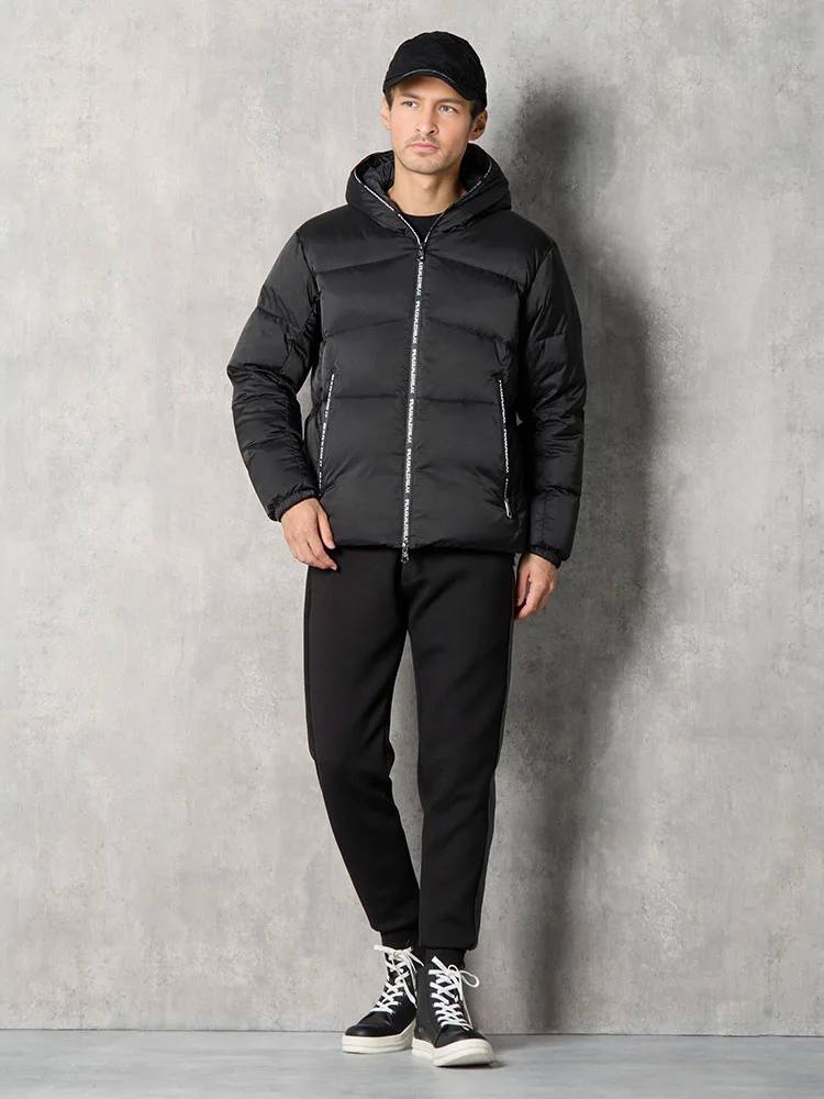 止水ファスナーにブランドロゴをプリントし、ブランドらしい艶感にスポーティさを兼ね備えたデザイン。